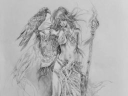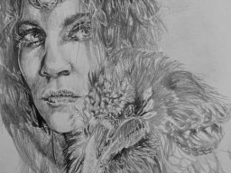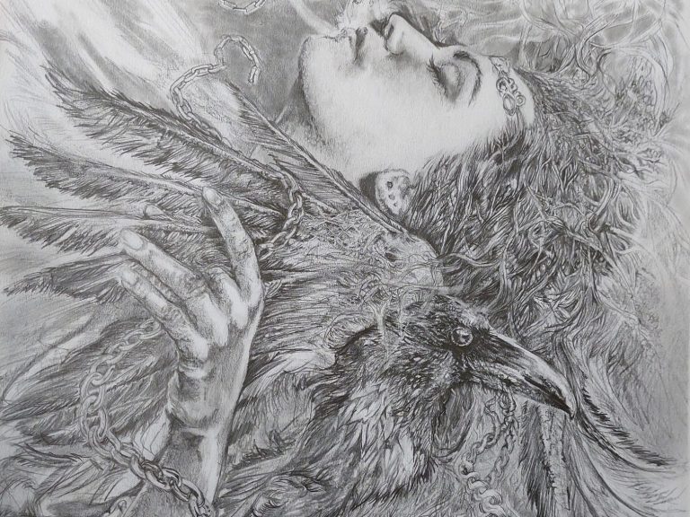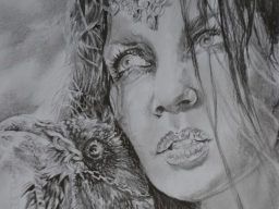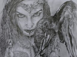 Dies ist eine Serie. Ein Weib verbunden mit ihrem Krafttier, der Rabe. Es stellt und zeigt künstlerisch die Verbundenheit zu einem Wesen, einem Krafttier oder einer fiktiven Figur dar.