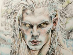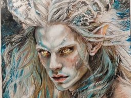 Er ist ein Mensch mit dem Funken des Drachens, somit ist er wandelbar und je nach Elementar-Funken Rot-Schwarz und Weißhaarig. Hier hat er den Wasser-Funken und trägt seine Pracht in Weiß.